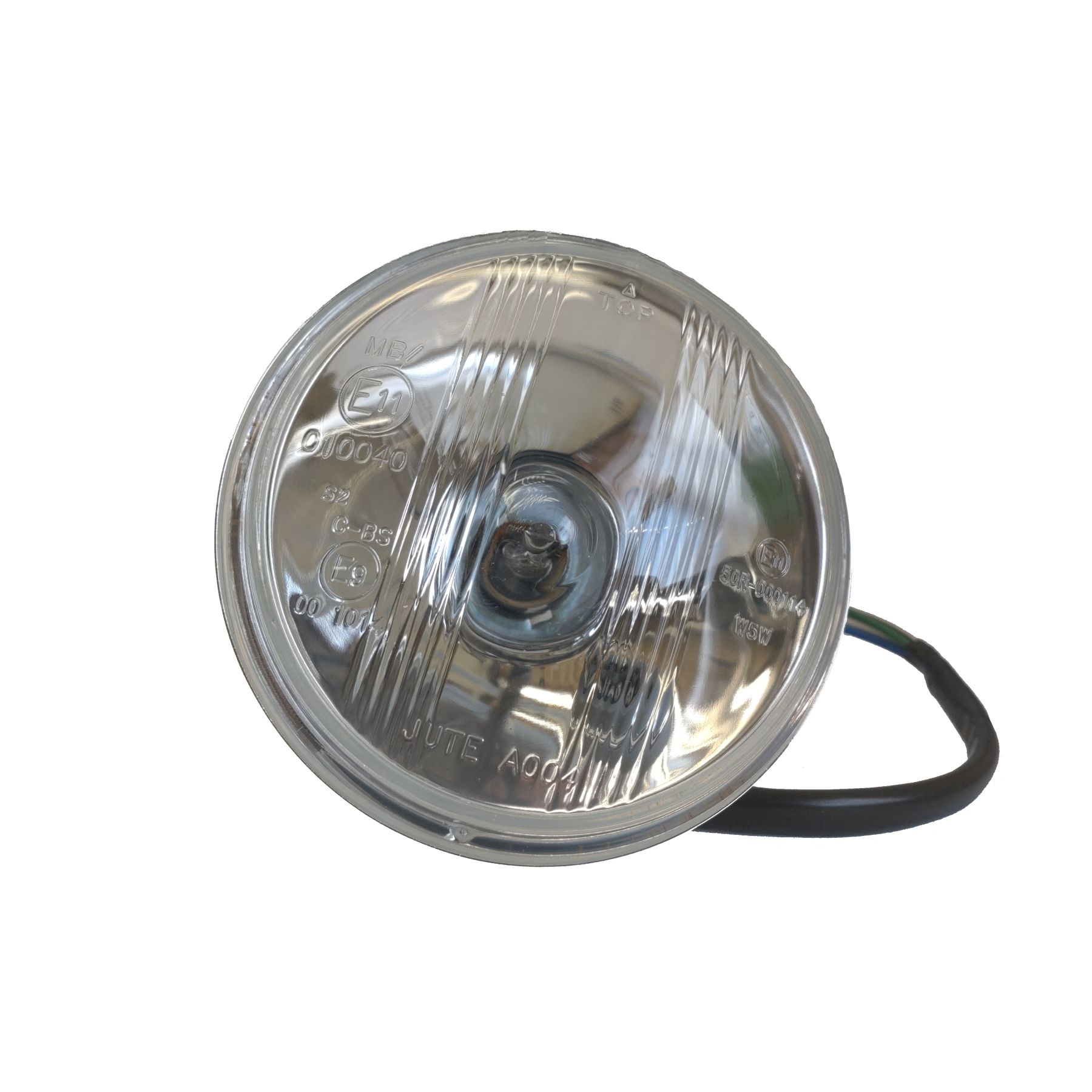 Der als Hauptscheinwerfer zugelassene Einsatz hat ein geprägtes Glas und wird mit einer Bilux Birne 35/35W und Standlicht geliefert.