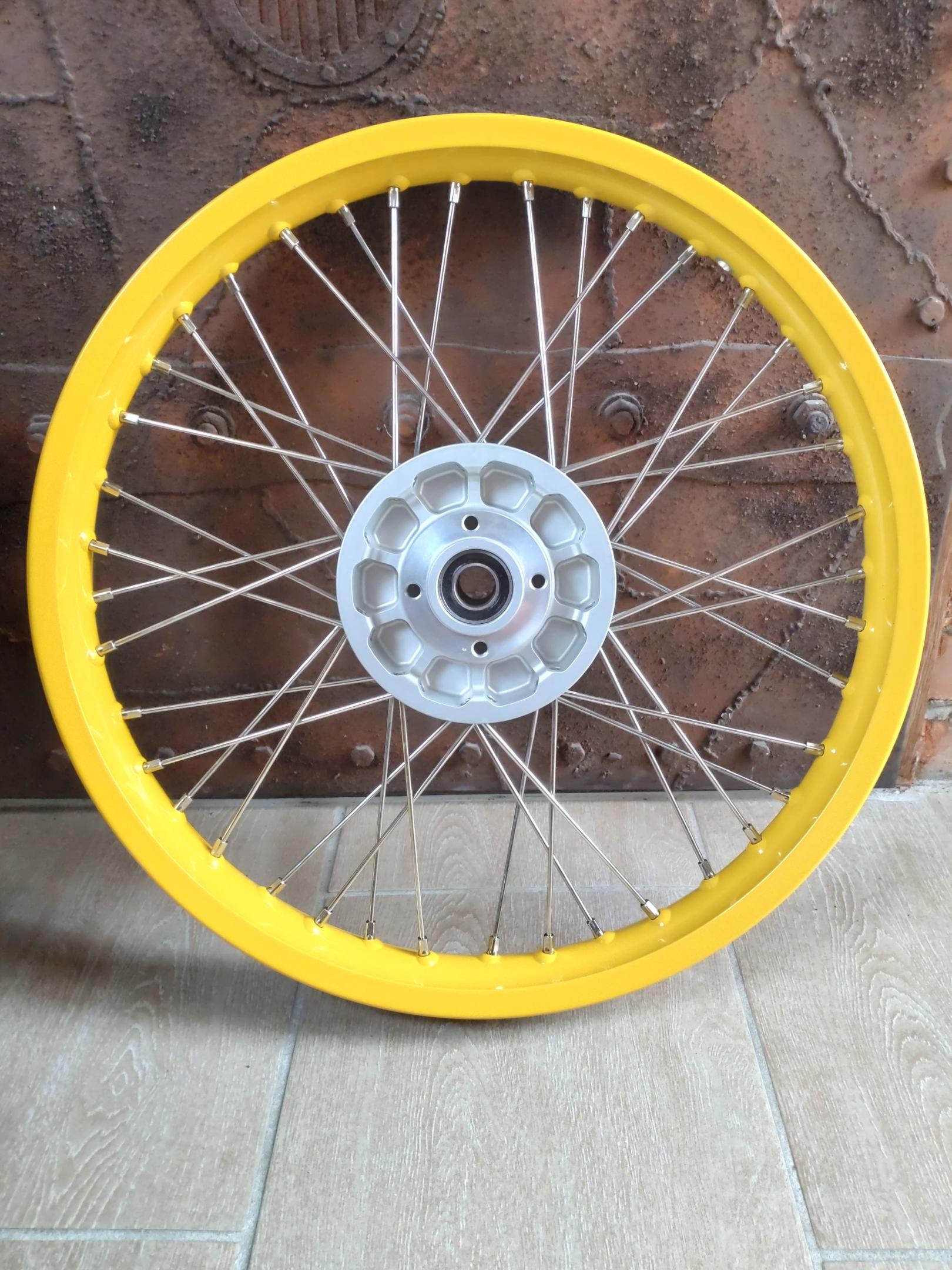 Das Vorderrad wurde in RAL 1032 Ginstergelb / Broom Yellow beschichtet.